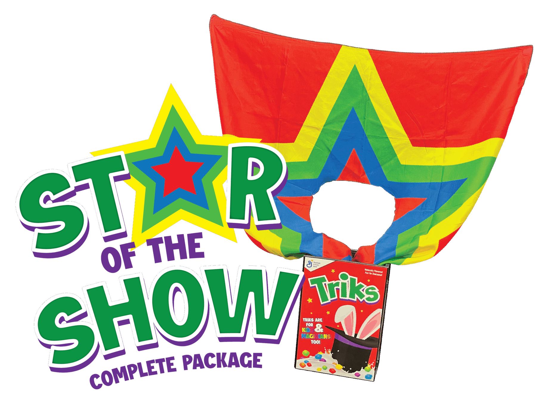 Celebrating TWINS or COMBINED BIRTHDAYS with two families? You can have one kid holding the box and the other holding the wand. Then produce (2) Star Silk from the box. Open them up and you have 2 stars of the show. Additional Star Silks, $75. each.